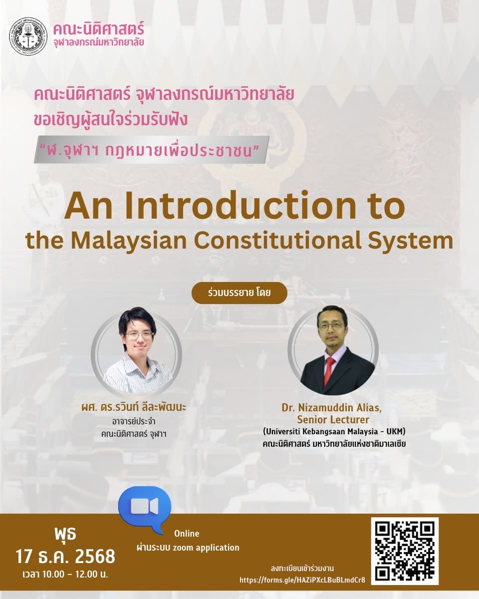 ขอเชิญร่วมรับฟัง การบรรยายให้ความรู้ทางวิชาการ “ฬ.จุฬาฯ กฎหมายเพื่อประชาชน”