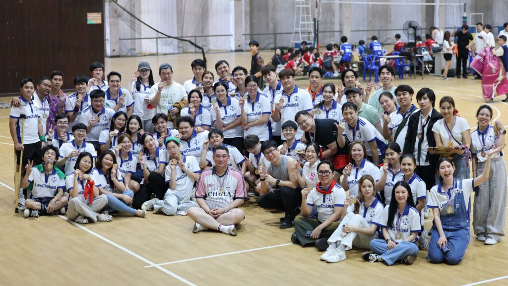 เมื่อวันเสาร์ที่ 24 มกราคม 2569 หลักสูตรนิติศาสตรบัณฑิต ภาคบัณฑิต (นอกเวลาราชการ) ได้จัดกิจกรรม “กีฬาสานสัมพันธ์ ฬ.(ภาคบัณฑิต) ประจำปีการศึกษา 2568” ณ สนามกีฬาในร่ม 1 จุฬาลงกรณ์มหาวิทยาลัย เพื่อส่งเสริมการเล่นกีฬาออกกำลังกาย เชื่อมความสามัคคีในแต่ละชั้นปี และสร้างความสัมพันธ์อันดีระหว่างนิสิต คณาจารย์ และเจ้าหน้าที่ โดยภายในกิจกรรมประกอบด้วยการแข่งขันกีฬาหลายชนิด ได้แก่ แชร์บอล แบดมินตัน ตี่จับ โดดยางเชือก ดึงผ้า และ Squid game gogowa เป็นต้น