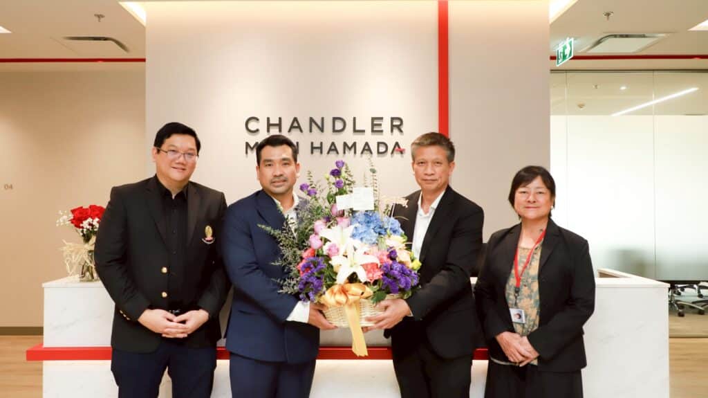 เมื่อวันอังคารที่ 17 กุมภาพันธ์ 2569 รองศาสตราจารย์ ดร.ศุภศิษฏ์ ทวีแจ่มทรัพย์ คณบดีคณะนิติศาสตร์ จุฬาลงกรณ์มหาวิทยาลัย พร้อมด้วย ผู้ช่วยศาสตราจารย์ ดร.ณัชพล จิตติรัตน์ รองคณบดี นำกระเช้ามอบแก่คุณเจษฎา สวัสดิพงษ์ Chairman & Senior Partner บริษัท แชนด์เล่อร์ โมริ ฮะมะดะ จำกัด พร้อมด้วย ชิคาโกะ ทาคายะ Co-Managing Partner Attorney at Law (Japan and New York) เพื่อสวัสดีปีใหม่ย้อนหลังและแสดงความขอบคุณต่อความอนุเคราะห์สนับสนุนกิจกรรมของคณะนิติศาสตร์ในรูปแบบต่าง ๆ